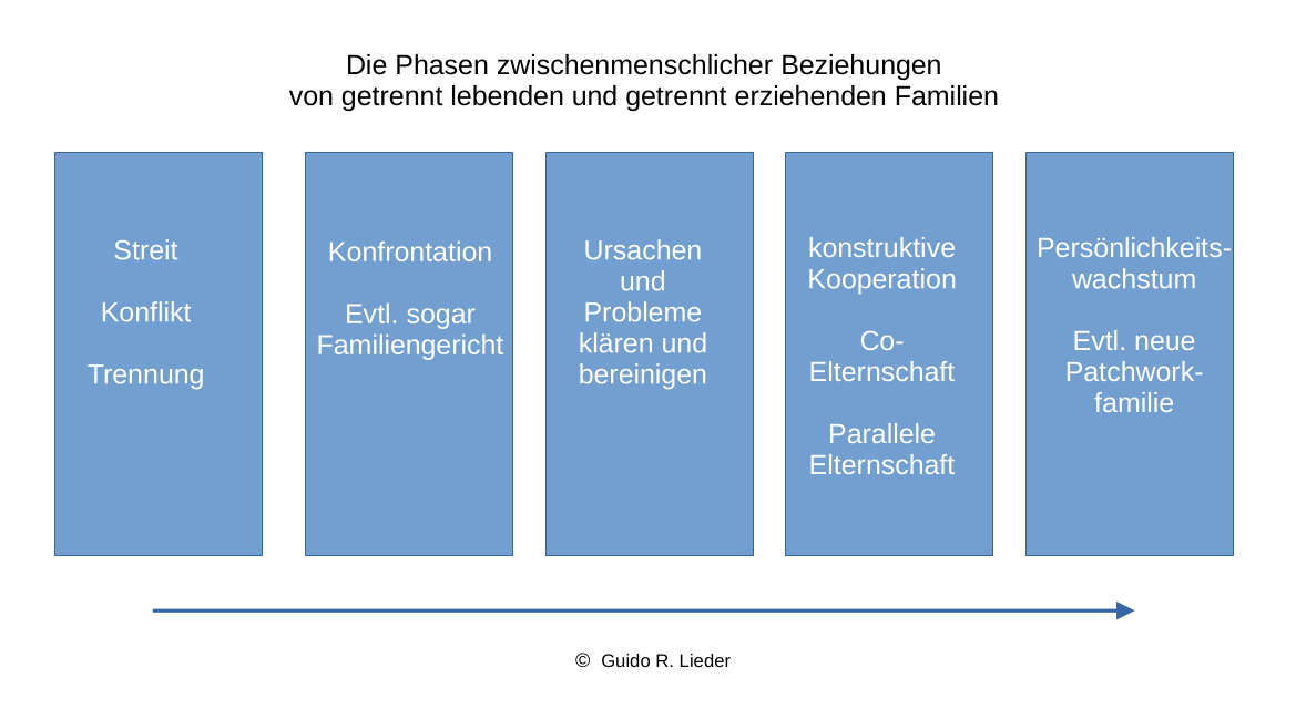 Viele dieser Themen können auch in einer zeitlichen Folge einsortiert werden. Diese zeitliche Folge oder auch die 'Phasen von Getrennterziehend' werden nachfolgend erläutert
